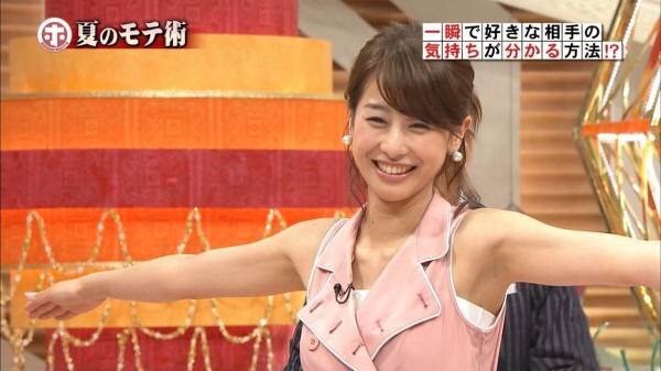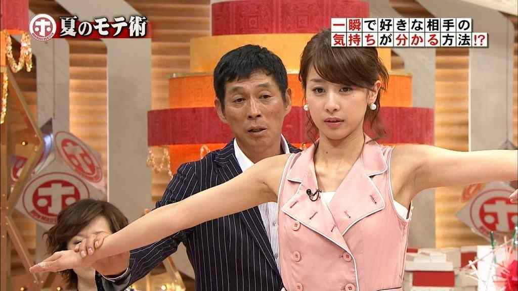 「6月末から肩先が隠れる程度の、ワキが見えるキャップスリーブを着始めたのです。すると、視聴率が1%上がったといいます。とにかくワキ出し効果は絶大。男性だけでなく、女性層から見てもカトパンのワキ見せは可愛らしいと評判です。プラス、ヨコ乳見せなら5%アップでしょう」(同)