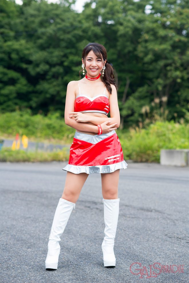 イベント前の緊張感そのままに囲み取材に応じた佐々木だったが、衣装は大胆なへそ出し超ミニなエナメル素材のブルマ&体操着。さらに黒のニーハイに厚底サンダルと言う臨戦態勢。なのに時折見せる、目が三日月形になる癒しの笑顔と、丁寧に質問に答える愛くるしさはぬいぐるみのようだ。しかしポージングを要求すると、さすが百戦錬磨のカメラに対峙しているトップレースクイーンだけあってビシッと決める。ただグラビア寄りのポージングには「あれ?」と戸惑いを見せながらも懸命にポーズを取る彼女に、取材陣もメロメロになってしまった。