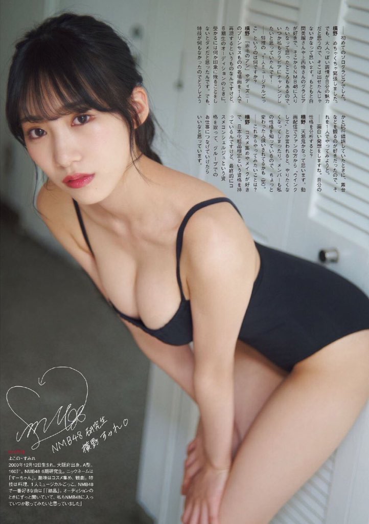 白間美瑠や上西怜といったグラビアでも活躍するメンバーを擁するNMB48だが、新たなグラビアクイーンの誕生を予感させる逸材だ。