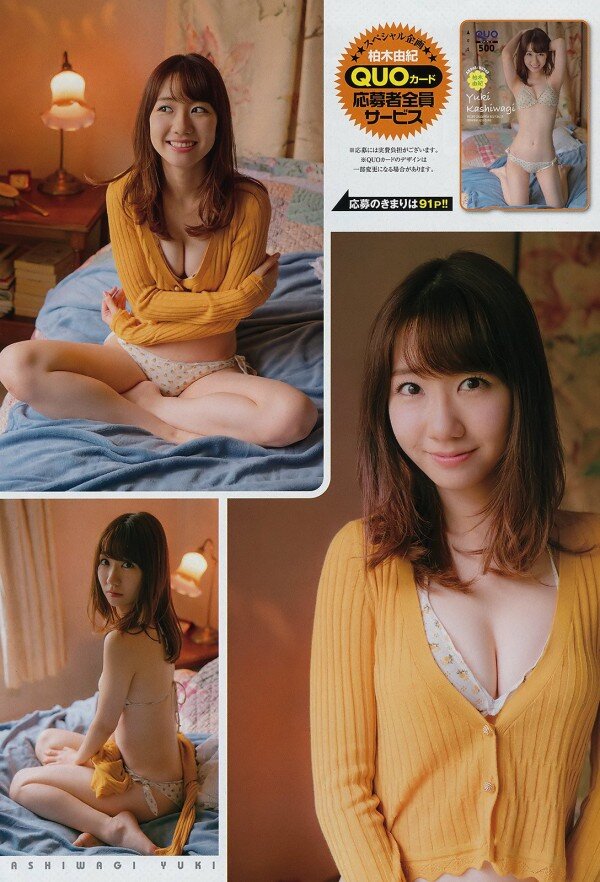 AKB48の柏木由紀が、26日発売の「週刊ヤングジャンプ」26号の特別付録ミニ写真集に登場。色白のパーフェクトボディを披露した。