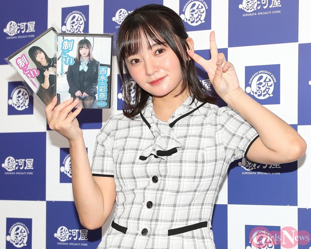グラビアアイドルの西永彩奈さんがDVD写真集『制これ~OL制服これくしょん~』Vol.01とVol.02の発売記念イベントを28日、駿河屋秋葉原本店で開催した。