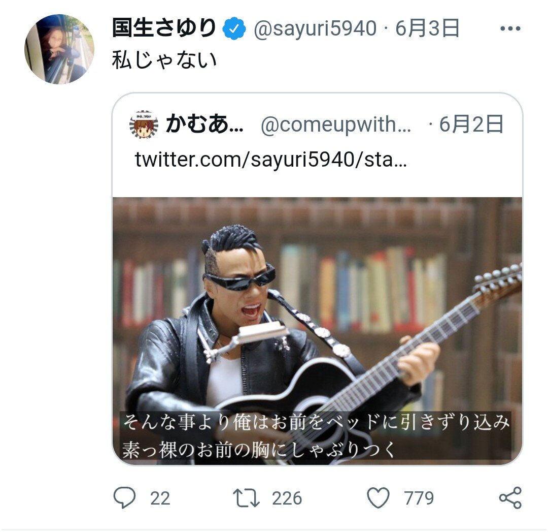 国生はストーリーズを更新し、写真週刊誌「フライデー」のリンクを添付。フライデーには「私服姿もおしゃれ」と、買い物帰りの国生の“隠し撮り写真”が掲載されていた。