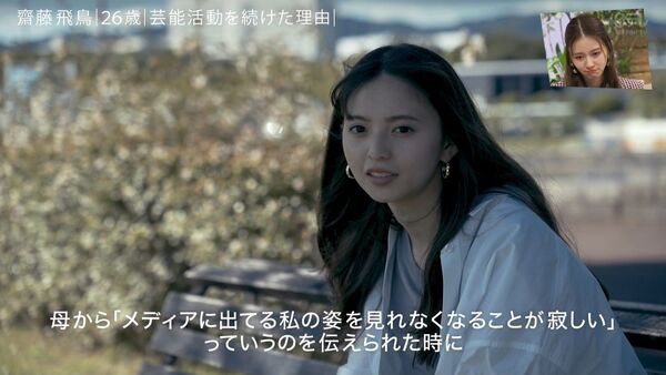 5年ぶりの同番組出演でコンサートなどでたびたび訪れた思い出の地・大阪を再訪した齊藤。吹田市の太陽の塔の中で「アイドルって、やっぱり特殊なので、基本的には深読みさせるというか、ファンの人にぶん投げといて、そちらで考察して楽しんでくださいねというものだと、私は勝手に思っていたので」と回顧。