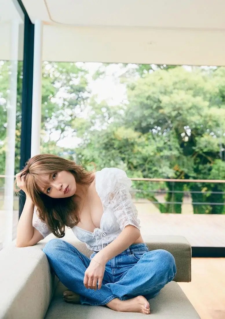 レオタードの概念を覆すようなデザインの数々だ。黒地に銀の装飾が施されたもの、鮮やかなピンクと紫で彩られたもの、白地に薄いピンクが入ったもの、胸元に複数の花びらがデザインされたものを見事に着こなした杉原。その中で最も印象的なのはピンク、黄色、紫色がグラデーションされたような着物風のレオタードだ。前面に「合わせ」、腰には帯を連想させるデザインとなっている。